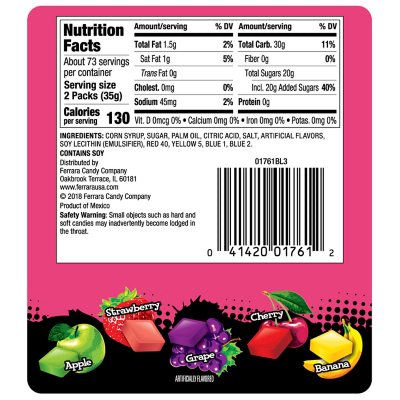 Original Grape Candy Now And Later from d2sls1zubb32fr.cloudfront.net There are 170 calories in 1 serving, 9 pieces (1.4 oz) of merci mamba, fruit chews. Candy, now&later (1 serving) calories: Products may be artificially flavored. Gummy & chewy candy at samsclub.com Corn syrup, sugar, palm oil, citric acid, salt, artificial flavor,soy lecithin (emulsifier), red 40, yellow 5, blue 1, blue 2.